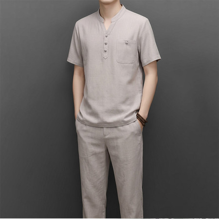 罗蒙衬衫&52603T男士亚麻莫代尔短袖衬衫